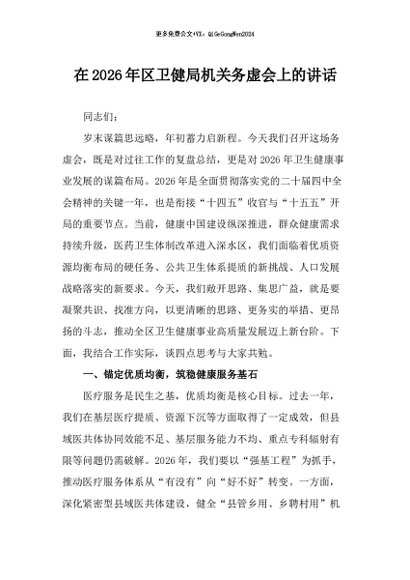 / 【七哥公文】2025年:在2026年区卫健局机关务虚会上的讲话_副本+更多免费公文+VX:QiGeGongWen2024