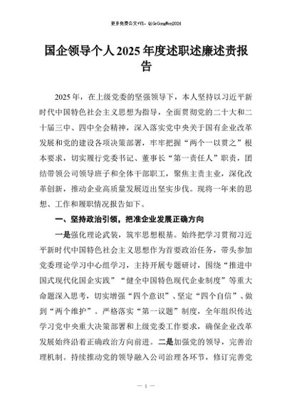 / 【七哥公文】2025年:国企领导个人2025年度述职述廉述责报告+更多免费公文+VX:QiGeGongWen2024