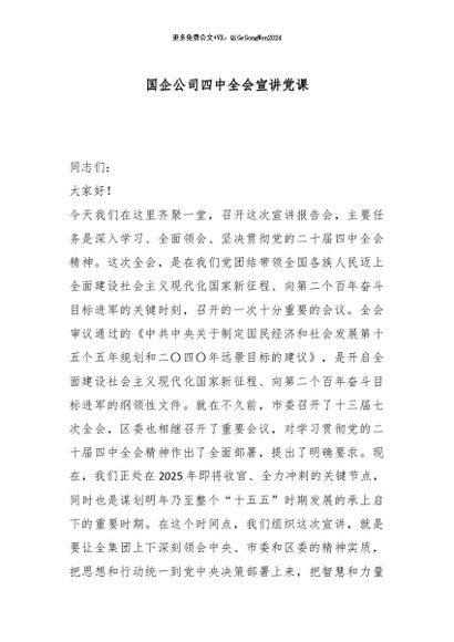 / 【七哥公文】2025年:国企公司四中全会宣讲党课_副本+更多免费公文+VX:QiGeGongWen2024