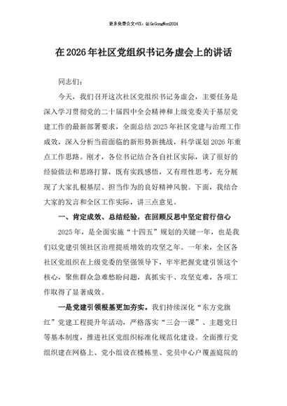 / 【七哥公文】2025年:在2026年社区党组织书记务虚会上的讲话_副本+更多免费公文+VX:QiGeGongWen2024