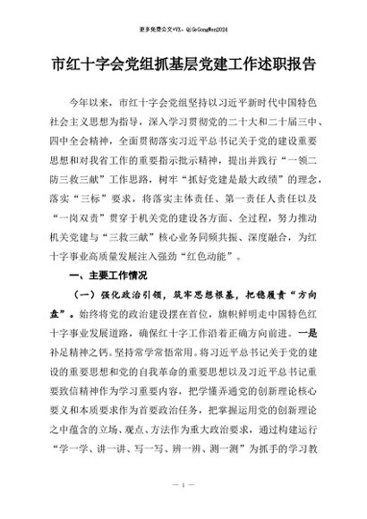 / 【七哥公文】2025年:市红十字会党组抓基层党建工作述职报告+更多免费公文+VX:QiGeGongWen2024