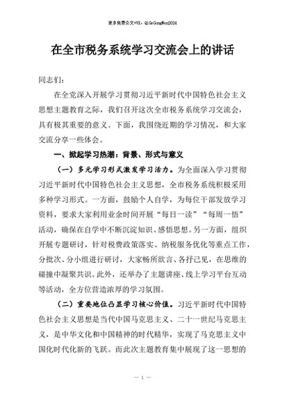 / 【七哥公文】2025年:在全市税务系统学习交流会上的讲话+更多免费公文+VX:QiGeGongWen2024