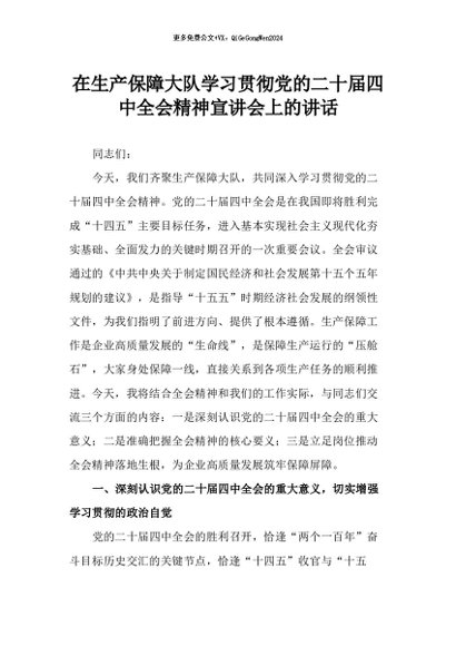 【七哥公文】2025年:在生产保障大队学习贯彻党的二十届四中全会精神宣讲会上的讲话_副本+更多免费公文+VX:QiGeGongWen2024