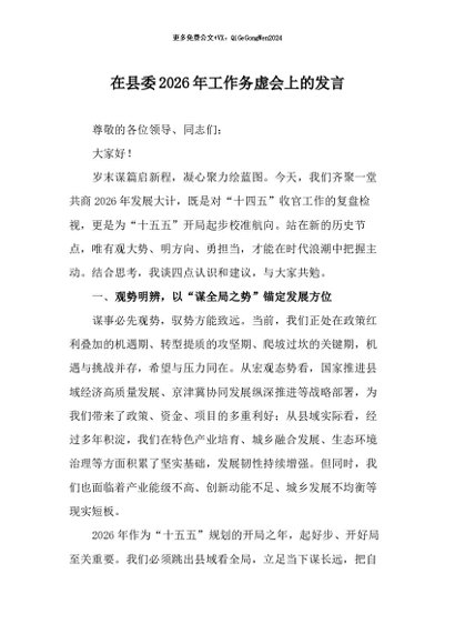 / 【七哥公文】2025年:在县委2026年工作务虚会上的发言_副本+更多免费公文+VX:QiGeGongWen2024