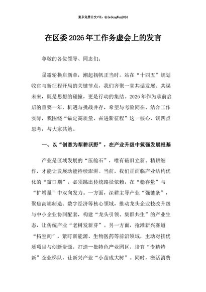 / 【七哥公文】2025年:在区委2026年工作务虚会上的发言_副本+更多免费公文+VX:QiGeGongWen2024