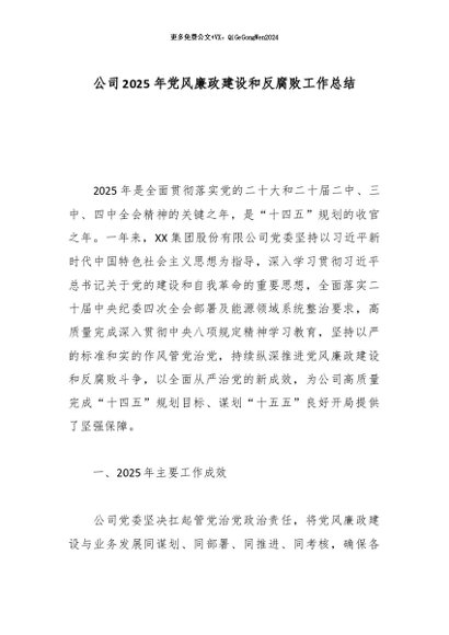 【七哥公文】2025年:公司2025年党风廉政建设和反腐败工作总结_副本+更多免费公文+VX:QiGeGongWen2024