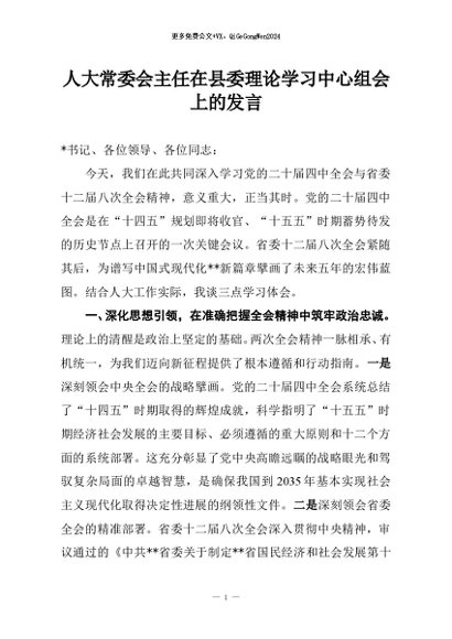 / 【七哥公文】2025年:人大常委会主任在县委理论学习中心组会上的发言+更多免费公文+VX:QiGeGongWen2024