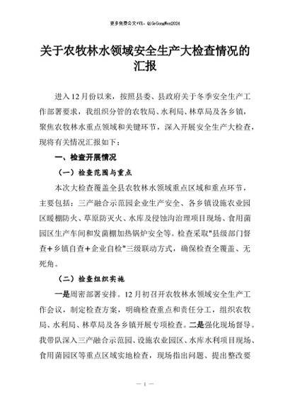/ 【七哥公文】2025年:关于农牧林水领域安全生产大检查情况的汇报+更多免费公文+VX:QiGeGongWen2024