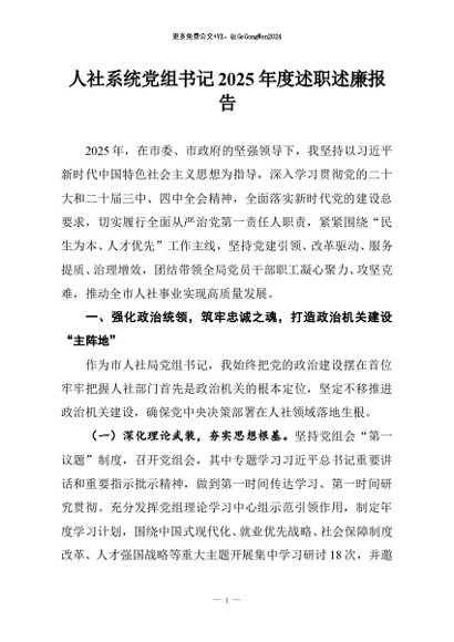 / 【七哥公文】2025年:人社系统党组书记2025年度述职述廉报告+更多免费公文+VX:QiGeGongWen2024