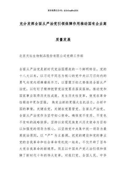 【七哥公文】2025年:充分发挥全面从严治党引领保障作用推动国有企业高质量发展_副本+更多免费公文+VX:QiGeGongWen2024