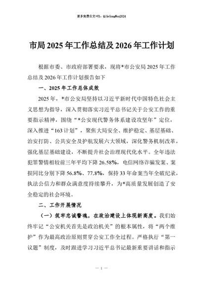 / 【七哥公文】2025年:市局2025年工作总结及2026年工作计划+更多免费公文+VX:QiGeGongWen2024
