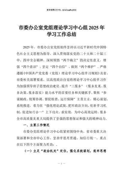 【七哥公文】2025年:市委办公室党组理论学习中心组2025年学习工作总结+更多免费公文+VX:QiGeGongWen2024