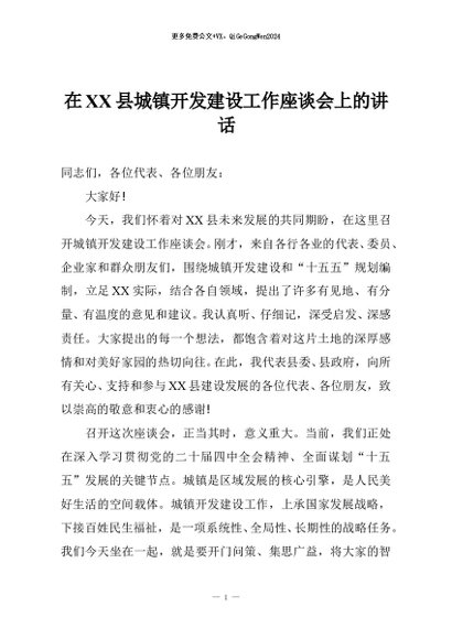 / 【七哥公文】2025年:在XX县城镇开发建设工作座谈会上的讲话+更多免费公文+VX:QiGeGongWen2024