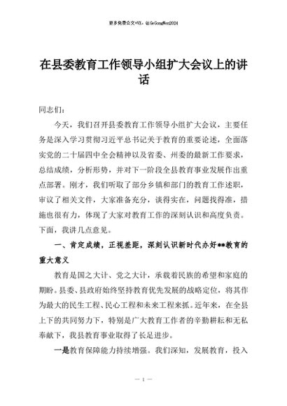 / 【七哥公文】2025年:在县委教育工作领导小组扩大会议上的讲话+更多免费公文+VX:QiGeGongWen2024