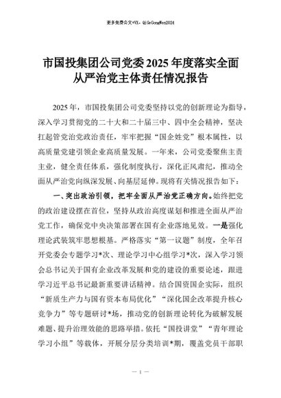 【七哥公文】2025年:市国投集团公司党委2025年度落实全面从严治党主体责任情况报告+更多免费公文+VX:QiGeGongWen2024