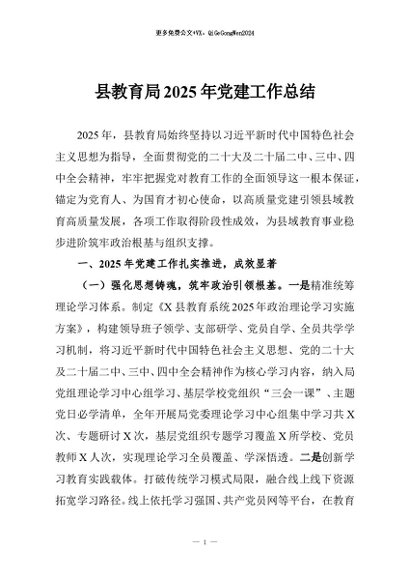 / 【七哥公文】2025年:县教育局2025年党建工作总结+更多免费公文+VX:QiGeGongWen2024