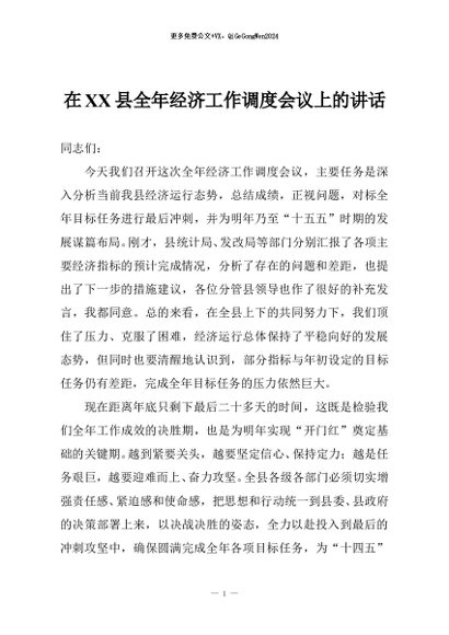 / 【七哥公文】2025年:在XX县全年经济工作调度会议上的讲话+更多免费公文+VX:QiGeGongWen2024
