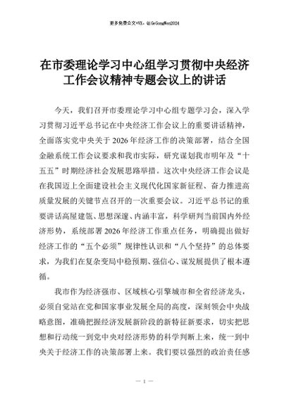 【七哥公文】2025年:在市委理论学习中心组学习贯彻中央经济工作会议精神专题会议上的讲话+更多免费公文+VX:QiGeGongWen2024