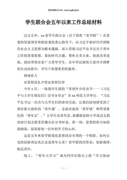 / 【七哥公文】2025年:学生联合会五年以来工作总结材料+更多免费公文+VX:QiGeGongWen2024