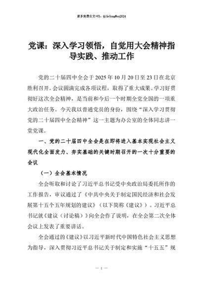 【七哥公文】2025年:党课:深入学习领悟,自觉用大会精神指导实践、推动工作+更多免费公文+VX:QiGeGongWen2024