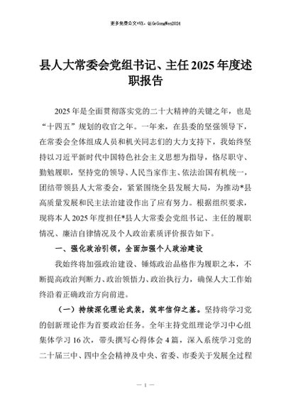 / 【七哥公文】2025年:县人大常委会党组书记、主任2025年度述职报告+更多免费公文+VX:QiGeGongWen2024