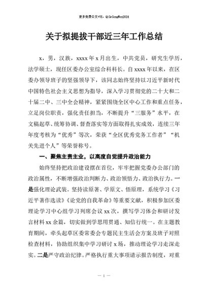 / 【七哥公文】2025年:关于拟提拔干部近三年工作总结+更多免费公文+VX:QiGeGongWen2024