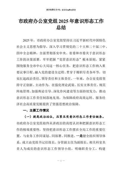 / 【七哥公文】2025年:市政府办公室党组2025年意识形态工作总结+更多免费公文+VX:QiGeGongWen2024