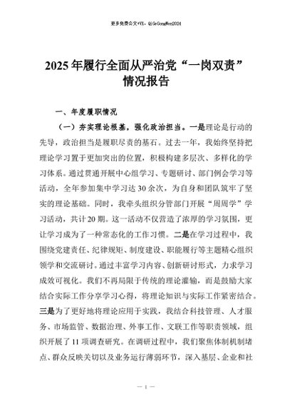 / 【七哥公文】2025年:2025年履行全面从严治党“一岗双责”情况报告+更多免费公文+VX:QiGeGongWen2024