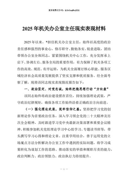 / 【七哥公文】2025年:2025年机关办公室主任现实表现材料+更多免费公文+VX:QiGeGongWen2024