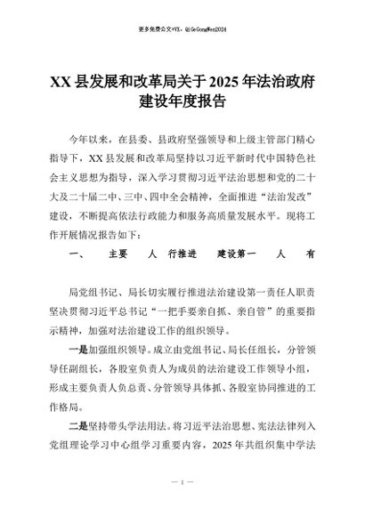 【七哥公文】2025年:XX县发展和改革局关于2025年法治政府建设年度报告+更多免费公文+VX:QiGeGongWen2024