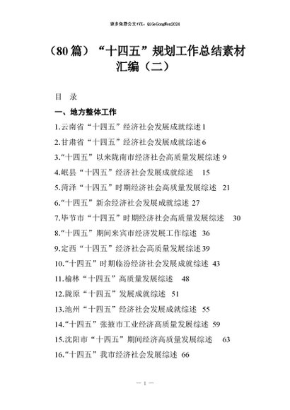 / 【七哥公文】2025年:(80篇)“十四五”规划工作总结素材汇编(二)+更多免费公文+VX:QiGeGongWen2024