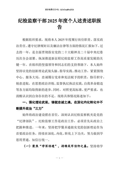 / 【七哥公文】2025年:纪检监察干部2025年度个人述责述职报告+更多免费公文+VX:QiGeGongWen2024