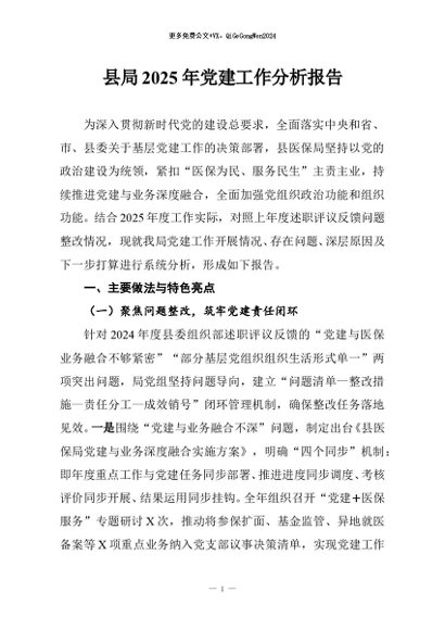 / 【七哥公文】2025年:县局2025年党建工作分析报告+更多免费公文+VX:QiGeGongWen2024