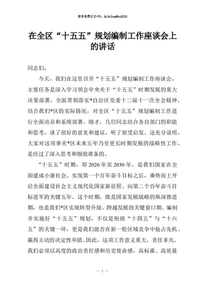 / 【七哥公文】2025年:在全区“十五五”规划编制工作座谈会上的讲话+更多免费公文+VX:QiGeGongWen2024