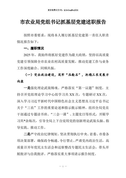 / 【七哥公文】2025年:市农业局党组书记抓基层党建述职报告+更多免费公文+VX:QiGeGongWen2024