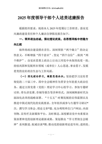 / 【七哥公文】2025年:2025年度领导干部个人述责述廉报告+更多免费公文+VX:QiGeGongWen2024