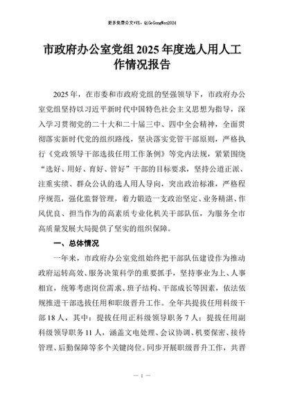 / 【七哥公文】2025年:市政府办公室党组2025年度选人用人工作情况报告+更多免费公文+VX:QiGeGongWen2024