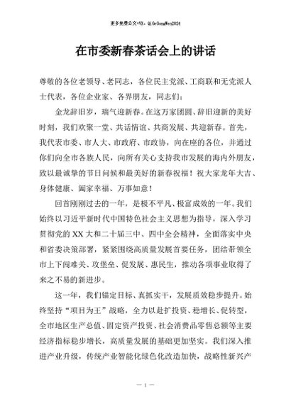 / 【七哥公文】2025年:在市委新春茶话会上的讲话+更多免费公文+VX:QiGeGongWen2024