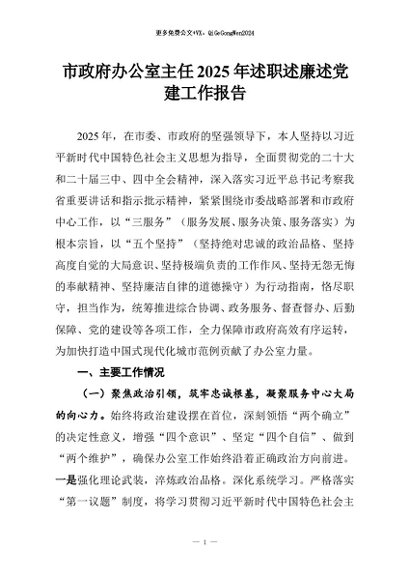 / 【七哥公文】2025年:市政府办公室主任2025年述职述廉述党建工作报告+更多免费公文+VX:QiGeGongWen2024