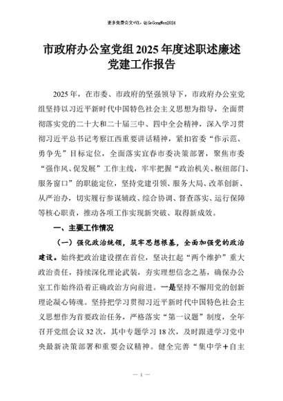 / 【七哥公文】2025年:市政府办公室党组2025年度述职述廉述党建工作报告+更多免费公文+VX:QiGeGongWen2024
