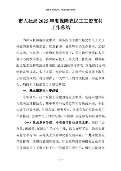 / 【七哥公文】2025年:市人社局2025年度保障农民工工资支付工作总结+更多免费公文+VX:QiGeGongWen2024