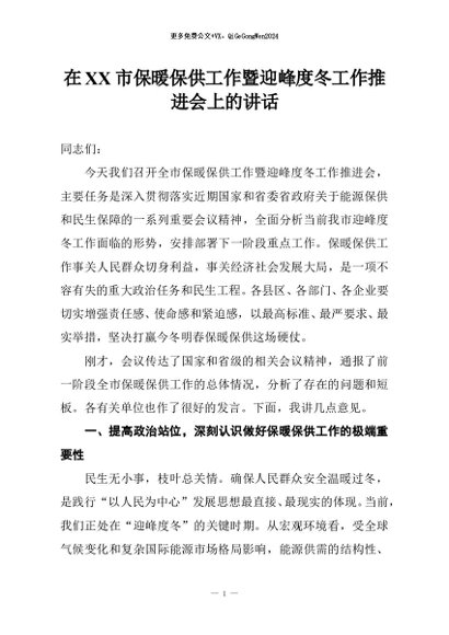 / 【七哥公文】2025年:在XX市保暖保供工作暨迎峰度冬工作推进会上的讲话+更多免费公文+VX:QiGeGongWen2024