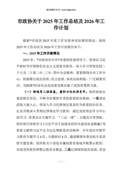 / 【七哥公文】2025年:市政协关于2025年工作总结及2026年工作计划+更多免费公文+VX:QiGeGongWen2024