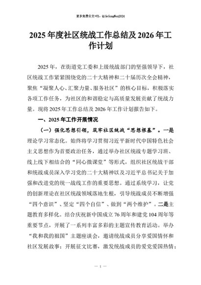 / 【七哥公文】2025年:2025年度社区统战工作总结及2026年工作计划+更多免费公文+VX:QiGeGongWen2024