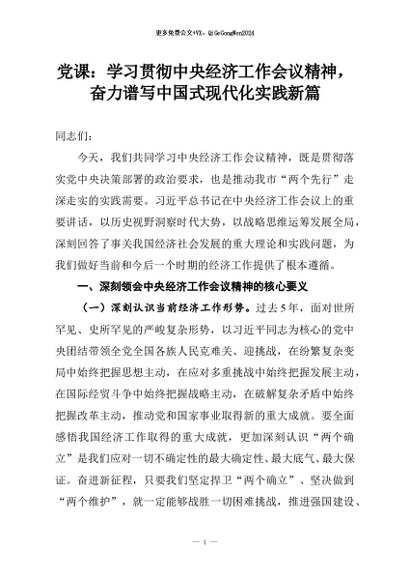 【七哥公文】2025年:党课:学习贯彻中央经济工作会议精神,奋力谱写中国式现代化实践新篇+更多免费公文+VX:QiGeGongWen2024