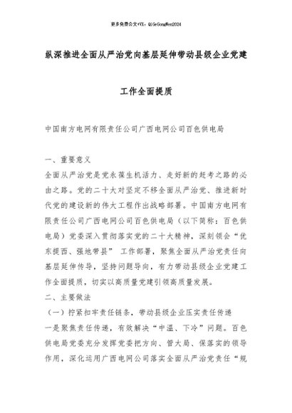 【七哥公文】2025年:纵深推进全面从严治党向基层延伸带动县级企业党建工作全面提质_副本+更多免费公文+VX:QiGeGongWen2024