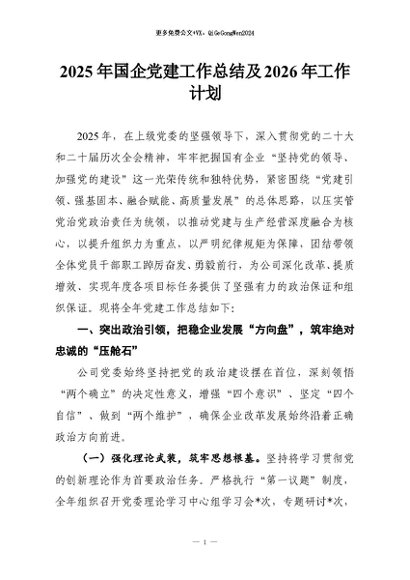 / 【七哥公文】2025年:2025年国企党建工作总结及2026年工作计划+更多免费公文+VX:QiGeGongWen2024