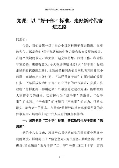 / 【七哥公文】2025年:党课:以“好干部”标准,走好新时代奋进之路+更多免费公文+VX:QiGeGongWen2024