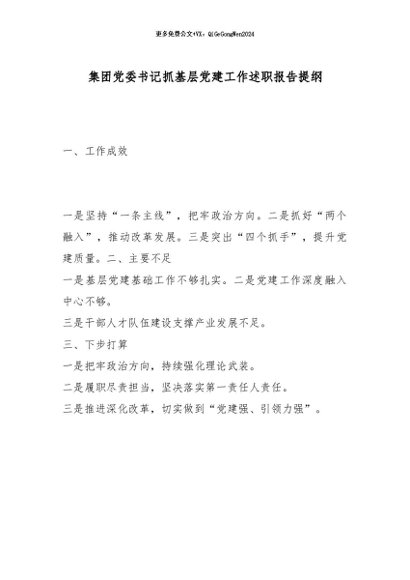 【七哥公文】2025年:集团党委书记抓基层党建工作述职报告提纲_副本+更多免费公文+VX:QiGeGongWen2024
