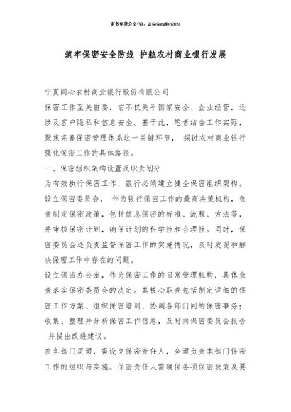 / 【七哥公文】2025年:筑牢保密安全防线 护航农村商业银行发展_副本+更多免费公文+VX:QiGeGongWen2024